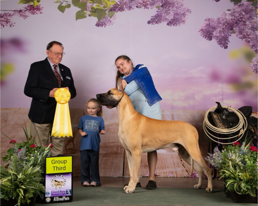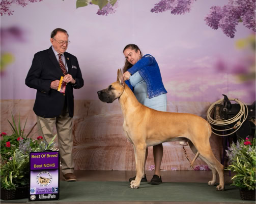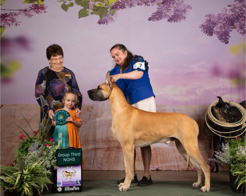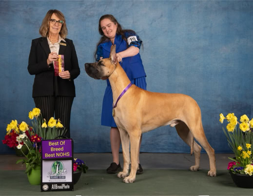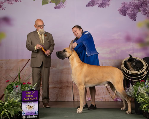 April 16, 2026: We have been very busy as the many new pictures for Arther and Mystic show. Long story short - Arthur earned his GHCB in April. He now has multiple variety and NOHS group placements since December added to his totals. Mystic contines to do well with several BOS placements. A very busy show schediule is ahead of us - and look forward to yet more great win pictures in the next couple of months.
