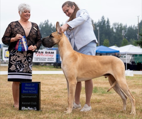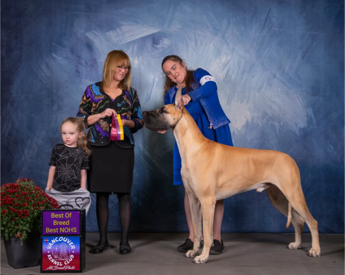 July 2025: Arthur was awarded a BOS, and BOB + NOHS BOB at the Tacoma KC show. Mystic received two RWB awards as she continues to learn how to show :-)