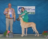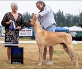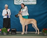 August 20: Arthur shows his stuff again. At the Enumclaw cluster (Sammish, Rainer Working Group, Olympic KC) he was awarded 1 RWD, 4 WD, 4 BOW, and 3 NOHS BOB. And we have now placed 7 of the Magic x Misty puppies.