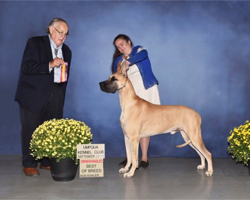 June 18, 2025: Arthur took two BOBs, two NOHS BOB, and a NOHS Gr 4 at the Roque Valley KC show.