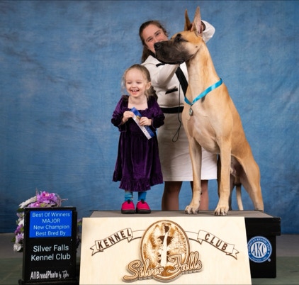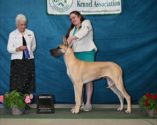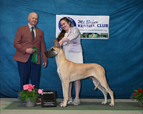February 24, 2025. Arthur added more wins at the Rose City show with WD and BOW all four days!! He then picked up his first main line variety BOB at the Linn County show February 21. Mystic is starting to learn how to show and we look forward to her development.
