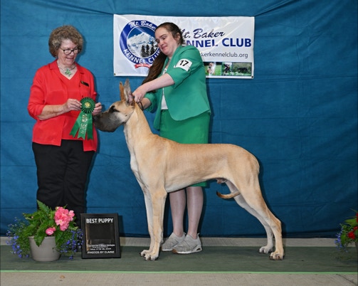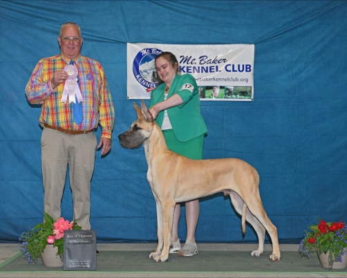 Arthur has been busy during the last two weekends in May with two SDs at the NW cluster and an SD and BOB act the Spokane KC shows. He now just needs two more points for his GHC title (already has more than needed number of majors and defeated champions). Mystic, his younger sister continues to figure out what a show ring is for. But we expect to see her earning points in the near future.