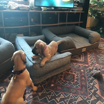 Second time ever playing in the main floor of the house. They got play time with all of our adult dogs (one at a time) both in the kennel and the main floor.