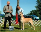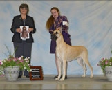 August 20: Arthur shows his stuff again. At the Enumclaw cluster (Sammish, Rainer Working Group, Olympic KC) he was awarded 1 RWD, 4 WD, 4 BOW, and 3 NOHS BOB. And we have now placed 7 of the Magic x Misty puppies.
