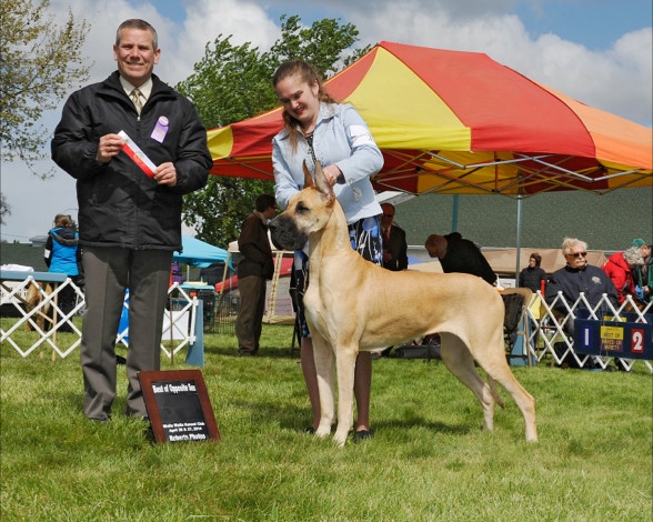 Arthur has been busy during the last two weekends in May with two SDs at the NW cluster and an SD and BOB act the Spokane KC shows. He now just needs two more points for his GHC title (already has more than needed number of majors and defeated champions). Mystic, his younger sister continues to figure out what a show ring is for. But we expect to see her earning points in the near future.
