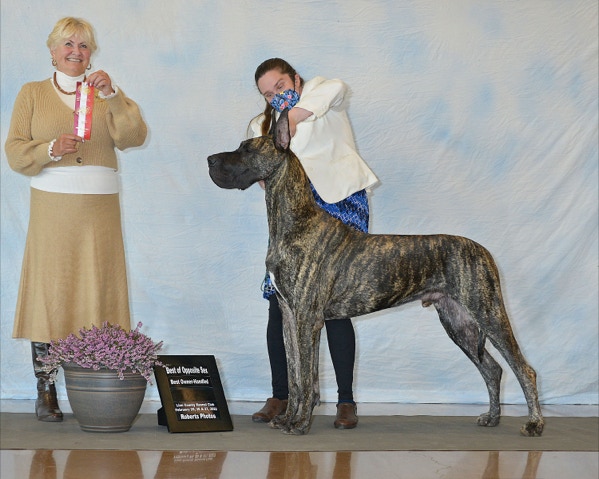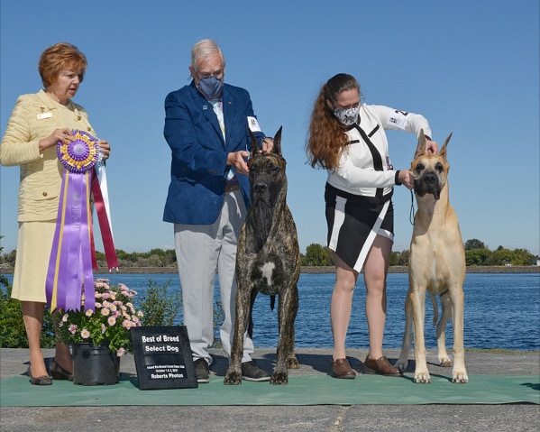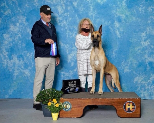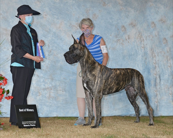 Sept 1,2025: Arthur continued to add to his award totals from the end of July to today with 3 BOB and NOHS BOBs, 4 BOS, 6 SD, NOHS Gr 3, and NOHA Gr 4. Mystic also continues to learn how to be a show dog,