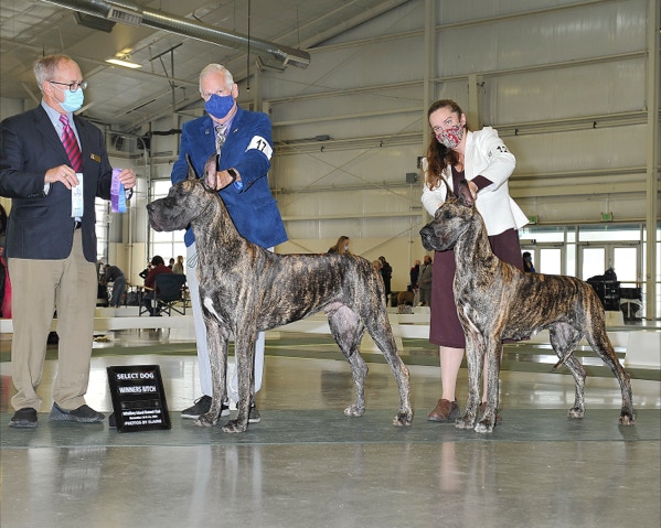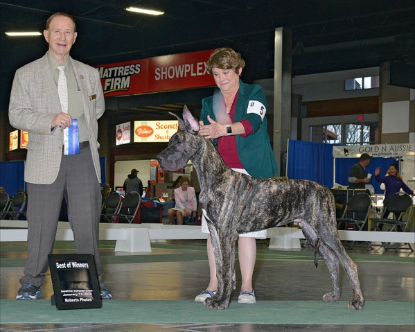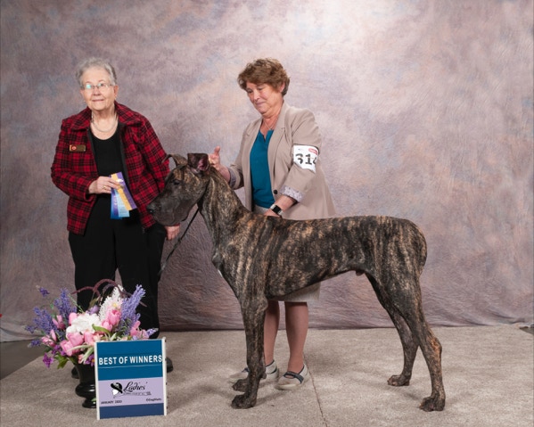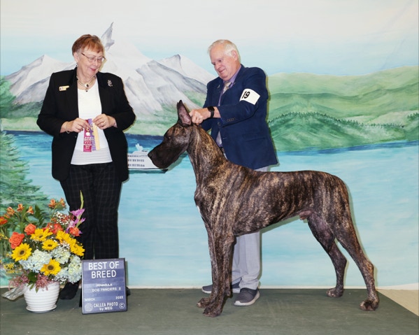 February 24, 2025. Arthur added more wins at the Rose City show with WD and BOW all four days!! He then picked up his first main line variety BOB at the Linn County show February 21. Mystic is starting to learn how to show and we look forward to her development.
