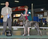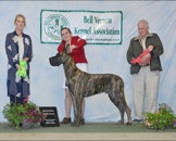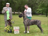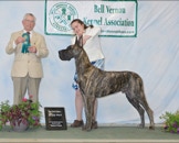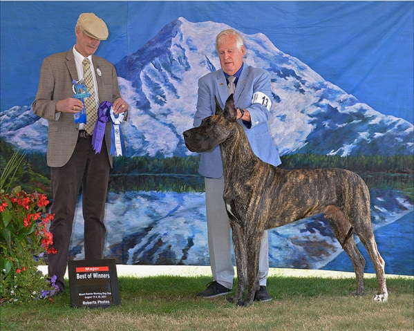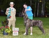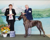 August 20: Arthur shows his stuff again. At the Enumclaw cluster (Sammish, Rainer Working Group, Olympic KC) he was awarded 1 RWD, 4 WD, 4 BOW, and 3 NOHS BOB. And we have now placed 7 of the Magic x Misty puppies.