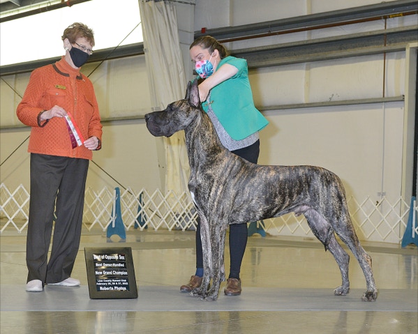 March 10, 2025: Arthur (17 months old) had a great weekend. Starting wtih WD and BOW to earn his championship, then followed that two wins as special earring two GCh majors with wins of champions of record. Mystic is learning how to sow in the ring and had a grand time in the RV,