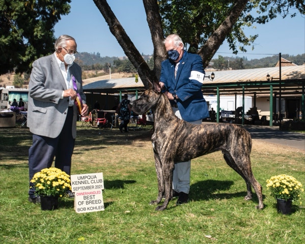 June 18, 2025: Arthur took two BOBs, two NOHS BOB, and a NOHS Gr 4 at the Roque Valley KC show.