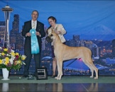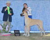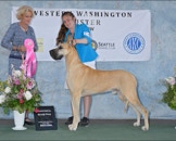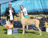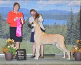 August 20: Arthur shows his stuff again. At the Enumclaw cluster (Sammish, Rainer Working Group, Olympic KC) he was awarded 1 RWD, 4 WD, 4 BOW, and 3 NOHS BOB. And we have now placed 7 of the Magic x Misty puppies.
