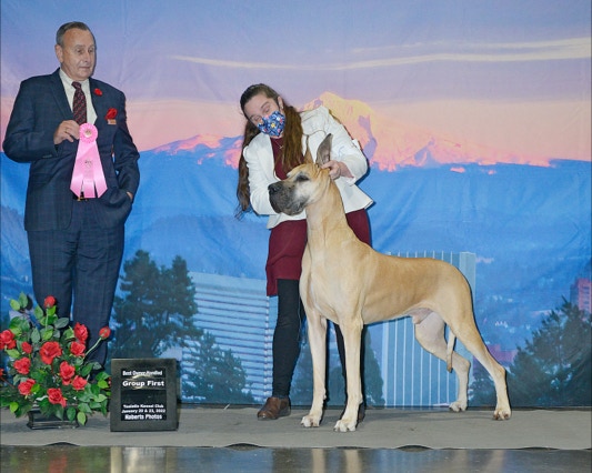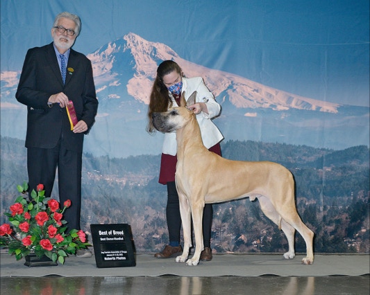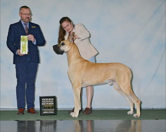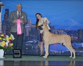 February 24, 2025. Arthur added more wins at the Rose City show with WD and BOW all four days!! He then picked up his first main line variety BOB at the Linn County show February 21. Mystic is starting to learn how to show and we look forward to her development.
