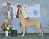 July 2025: Arthur was awarded a BOS, and BOB + NOHS BOB at the Tacoma KC show. Mystic received two RWB awards as she continues to learn how to show :-)