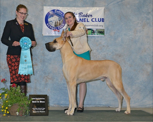 Arthur has been busy during the last two weekends in May with two SDs at the NW cluster and an SD and BOB act the Spokane KC shows. He now just needs two more points for his GHC title (already has more than needed number of majors and defeated champions). Mystic, his younger sister continues to figure out what a show ring is for. But we expect to see her earning points in the near future.