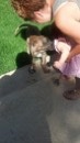 Squirming puppy head shot (fawn girl) - close to 4 weeks old
