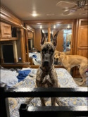 March 10, 2025: Arthur (17 months old) had a great weekend. Starting wtih WD and BOW to earn his championship, then followed that two wins as special earring two GCh majors with wins of champions of record. Mystic is learning how to sow in the ring and had a grand time in the RV,