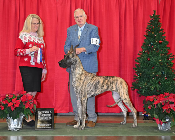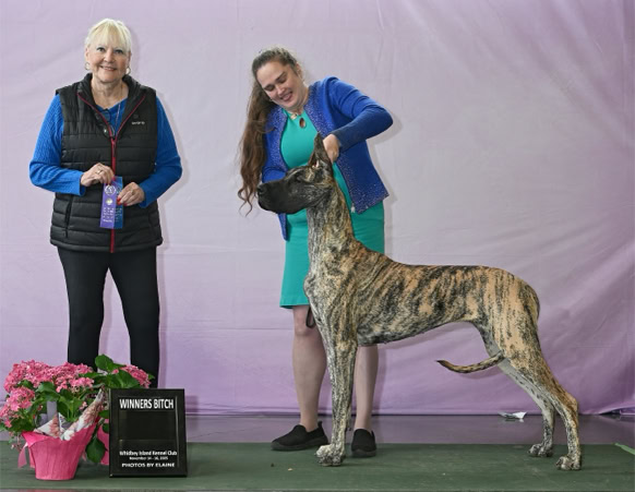 February 24, 2025. Arthur added more wins at the Rose City show with WD and BOW all four days!! He then picked up his first main line variety BOB at the Linn County show February 21. Mystic is starting to learn how to show and we look forward to her development.