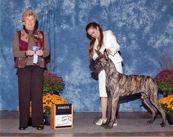 August 20: Arthur shows his stuff again. At the Enumclaw cluster (Sammish, Rainer Working Group, Olympic KC) he was awarded 1 RWD, 4 WD, 4 BOW, and 3 NOHS BOB. And we have now placed 7 of the Magic x Misty puppies.