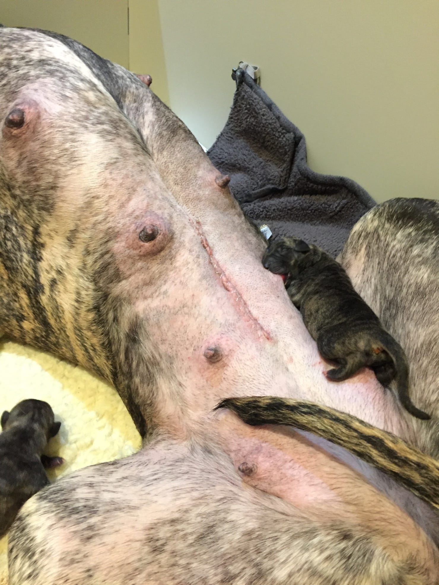 Lily has her own technique to get all possible nursing stations available to her pups. Now, she does not do this a lot, but a few times day has been the norm. She is taking a lot of care to let her puppies find good nursing spots.