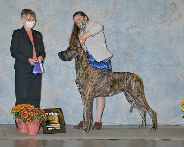 Sept 1,2025: Arthur continued to add to his award totals from the end of July to today with 3 BOB and NOHS BOBs, 4 BOS, 6 SD, NOHS Gr 3, and NOHA Gr 4. Mystic also continues to learn how to be a show dog,