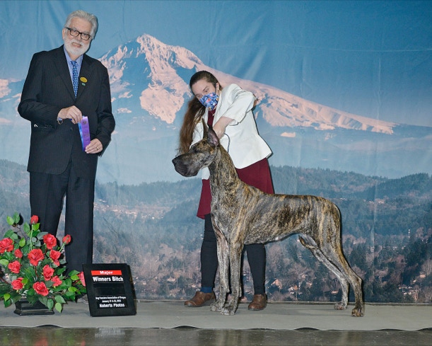 February 24, 2025. Arthur added more wins at the Rose City show with WD and BOW all four days!! He then picked up his first main line variety BOB at the Linn County show February 21. Mystic is starting to learn how to show and we look forward to her development.