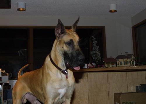 The dogs we have breed starated with Lewellen's and then became Danehold's. Now we have begun again with Teulu's Great Danes.
